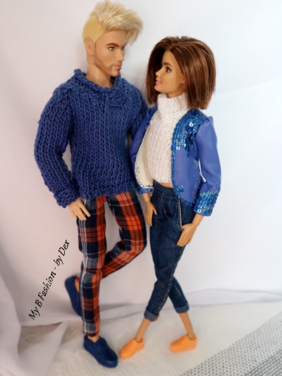 Lubię kiedy moje duety lalkowe do siebie pasują ubrankami i wcześniej, kiedy miałam ambicje na częste występowanie Kenów na moim blogu (to zanim okazało się że nie umiem z nimi pracować i każdy Ken przechodzi mnie automatyczna kastrację przez obiektywem) szyłam z tego samego materiału coś dla dziewczyn ale przy okazji też coś dla chłopaków.