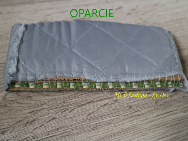 Potem, tak naprawdę zostało mi tylko obić obie części. Uwaga: w zaplanowanym miejscu łączenia nie zostały ani przyklejona gąbka, ani materiał - powierzchnie te zostały "czyste".